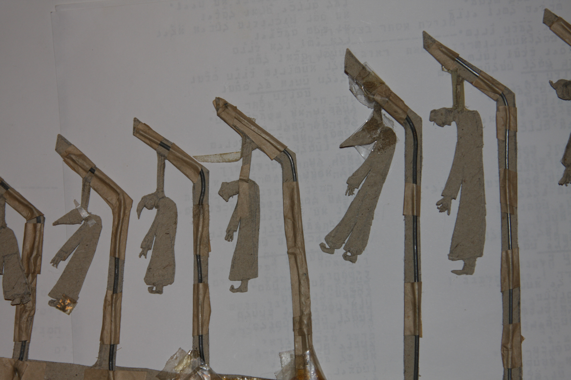 אני זוכר שאחד הדברים הראשונים שהרשימו אותי במפגש הראשון הזה, היה העושר של הפרטים בדמויות. מי חשב שבעזרת קרטון גס כזה אפשר לברוא דמויות כל-כך עדינות? סוג של פלא. אודי, אחיו של אבא, סיפר שהקרטון היה מקופסאות נעליים ישנות, מי היה מאמין, זה אפילו ידידותי לסביבה!