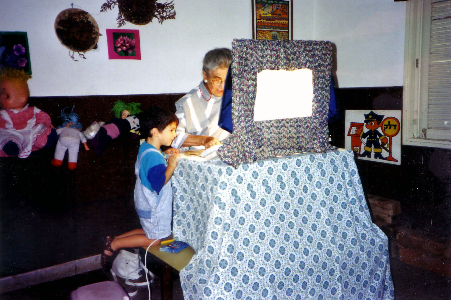 חומרי הגלם שעמדו לרשותי היו הדמויות וה"במה" (מסגרת עץ עם בד מתוח ווילון לקישוט), והטקסטים של כל ההצגות.